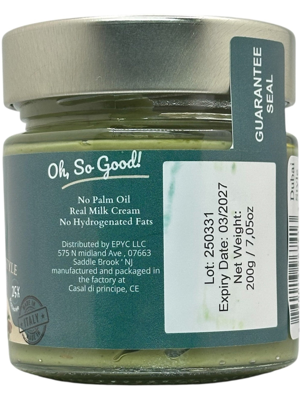 Premium Pistachio Cream – Dubai Style Crafted with meticulously selected pistachios, this luxurious cream blends authentic Italian culinary tradition with the rich, Dubai-style flavor. The distinctive preparation method preserves the nuts' natural oils, ensuring an exceptionally smooth consistency and an intense aromatic profile. A perfectly balanced sweetness enhances the bold pistachio essence, making it an exquisite ingredient for refined Italian desserts or a sophisticated accompaniment to artisanal breads and pastries.